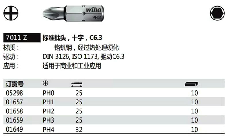 德國wiha十字批頭電動螺絲刀批咀 PH3*25mm