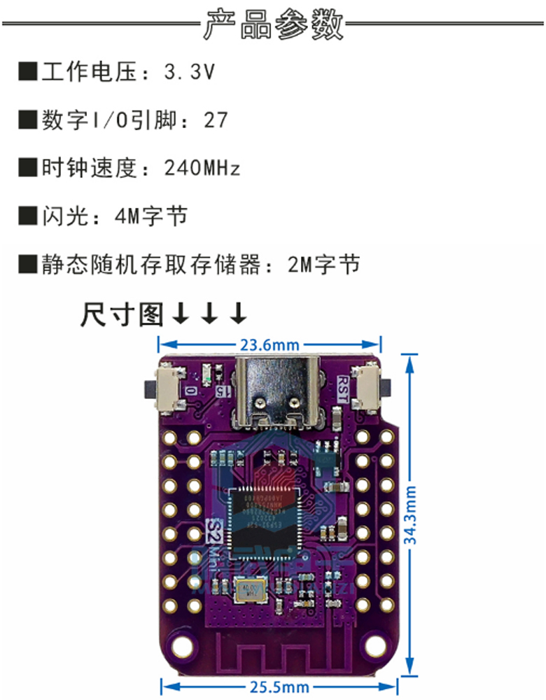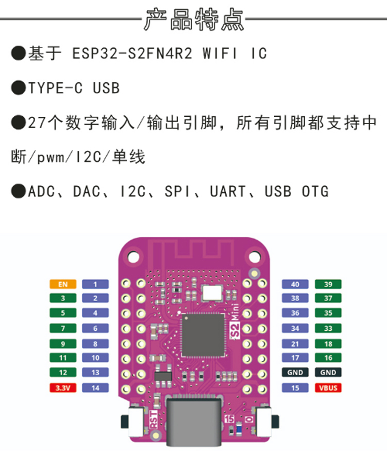 ESP32-S2 WIFI開發板 帶PSRAM 34.3*25.5MM