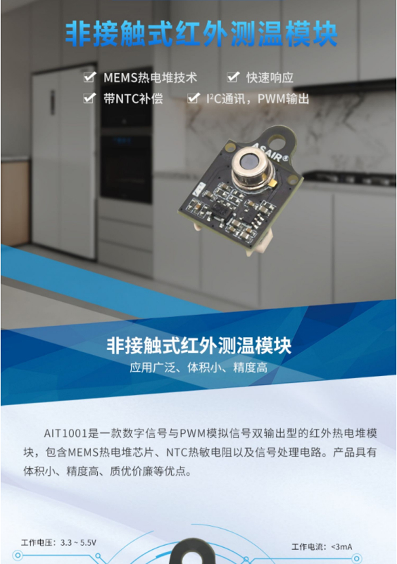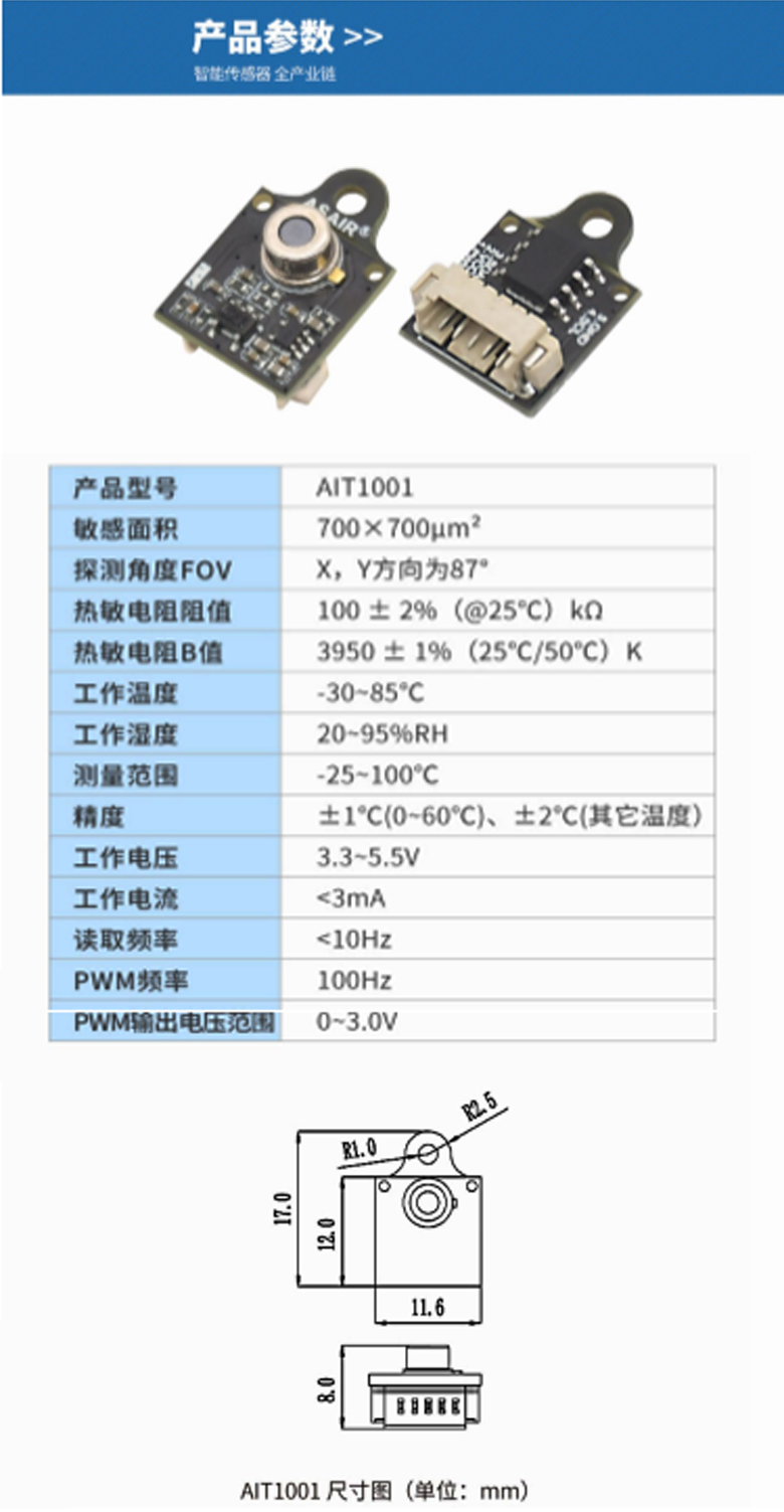 ASAIR 非接觸式紅外測溫模組 帶固定尾部17*12*11.6MM