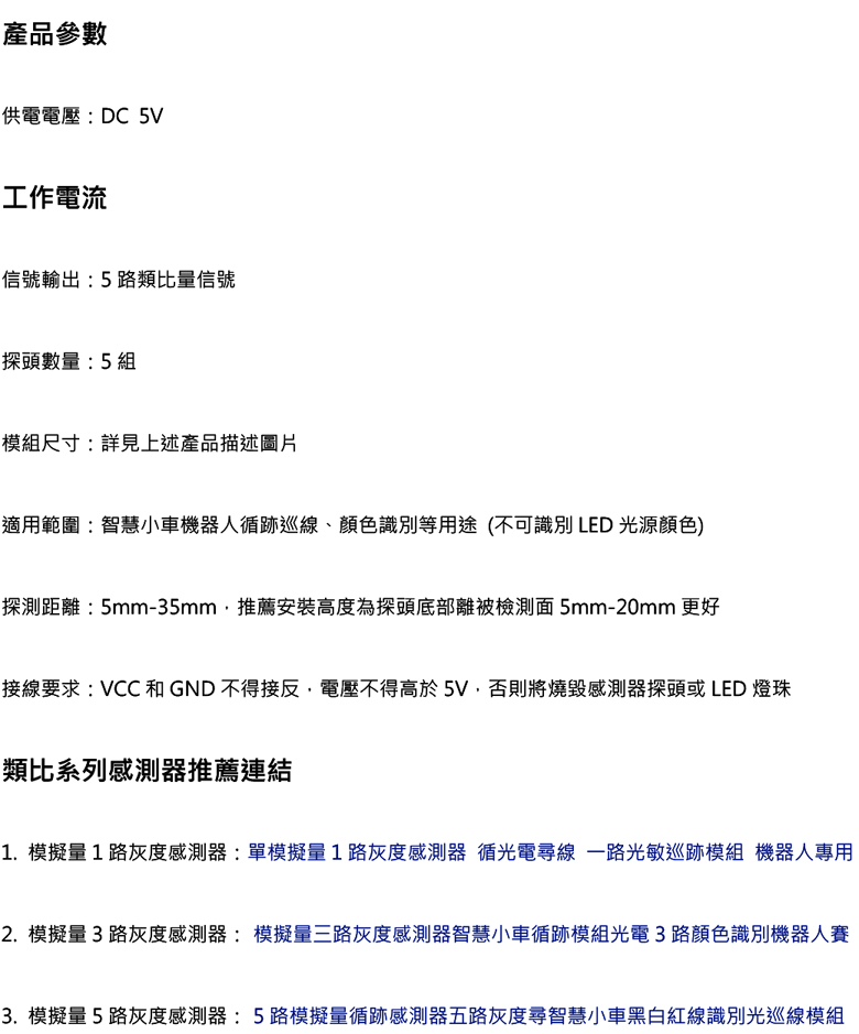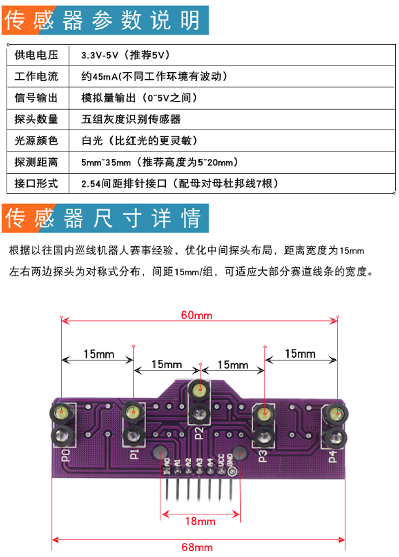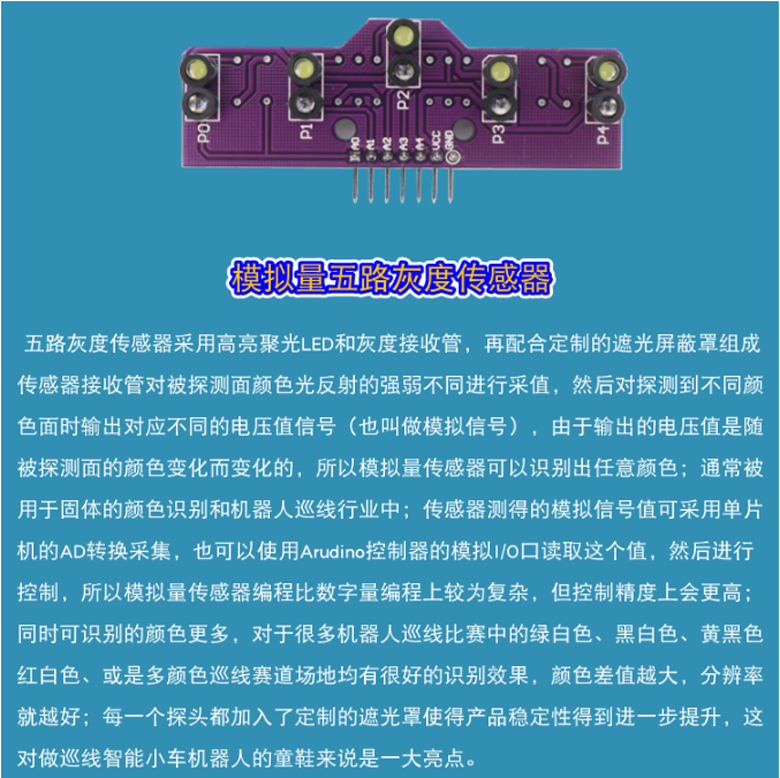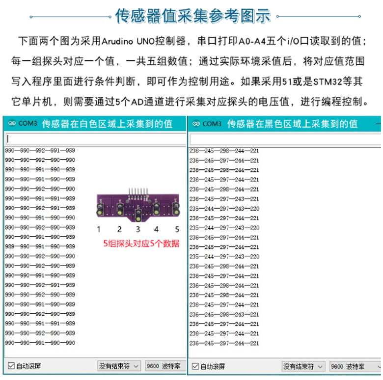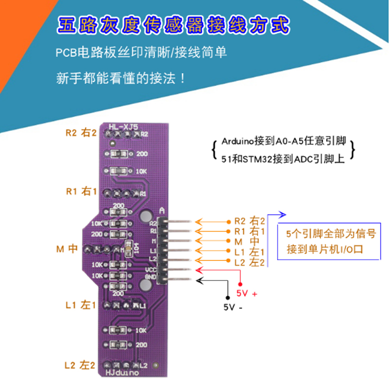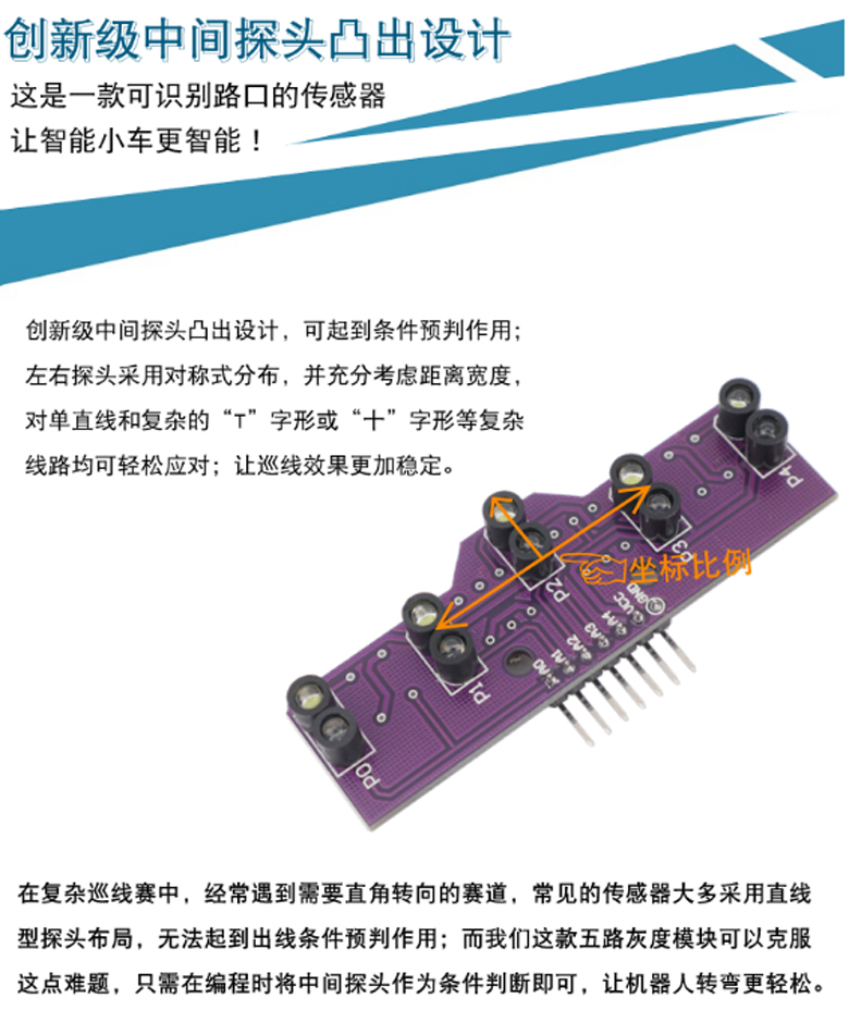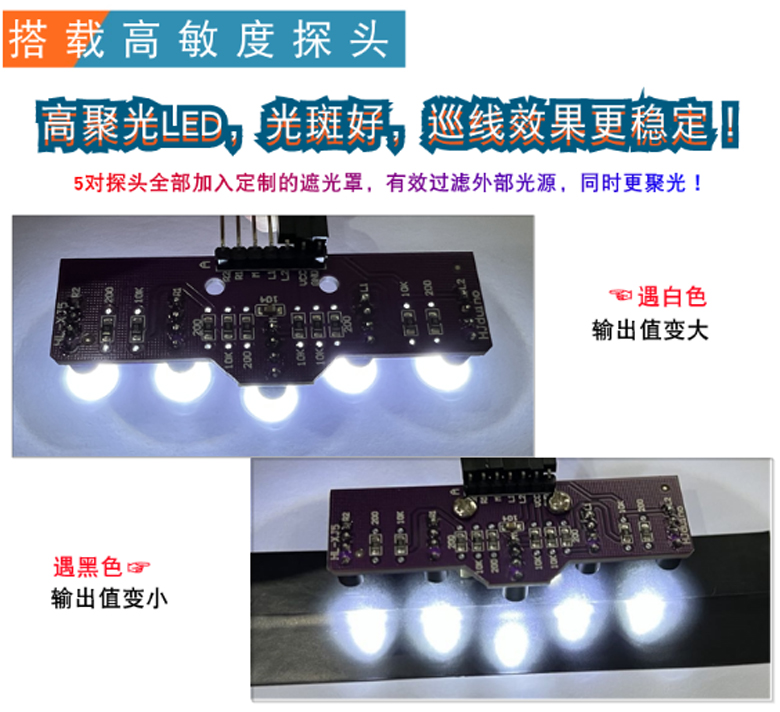5路灰度尋智能小車黑白紅線識別光巡線模組
