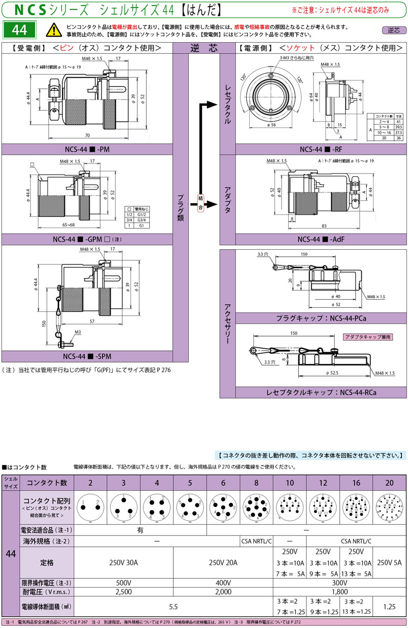 20P 母插座Female, Receptacle Shell size:44