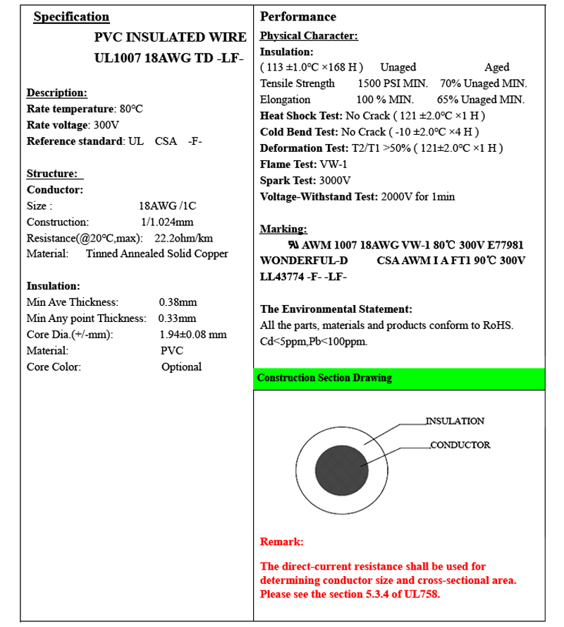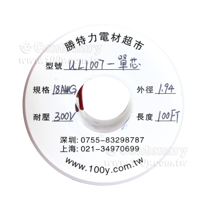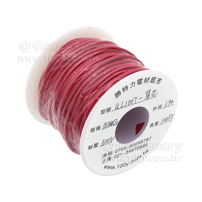 18AWG 紅色 80℃/300V OD1.94±0.08mm 30.5M/R