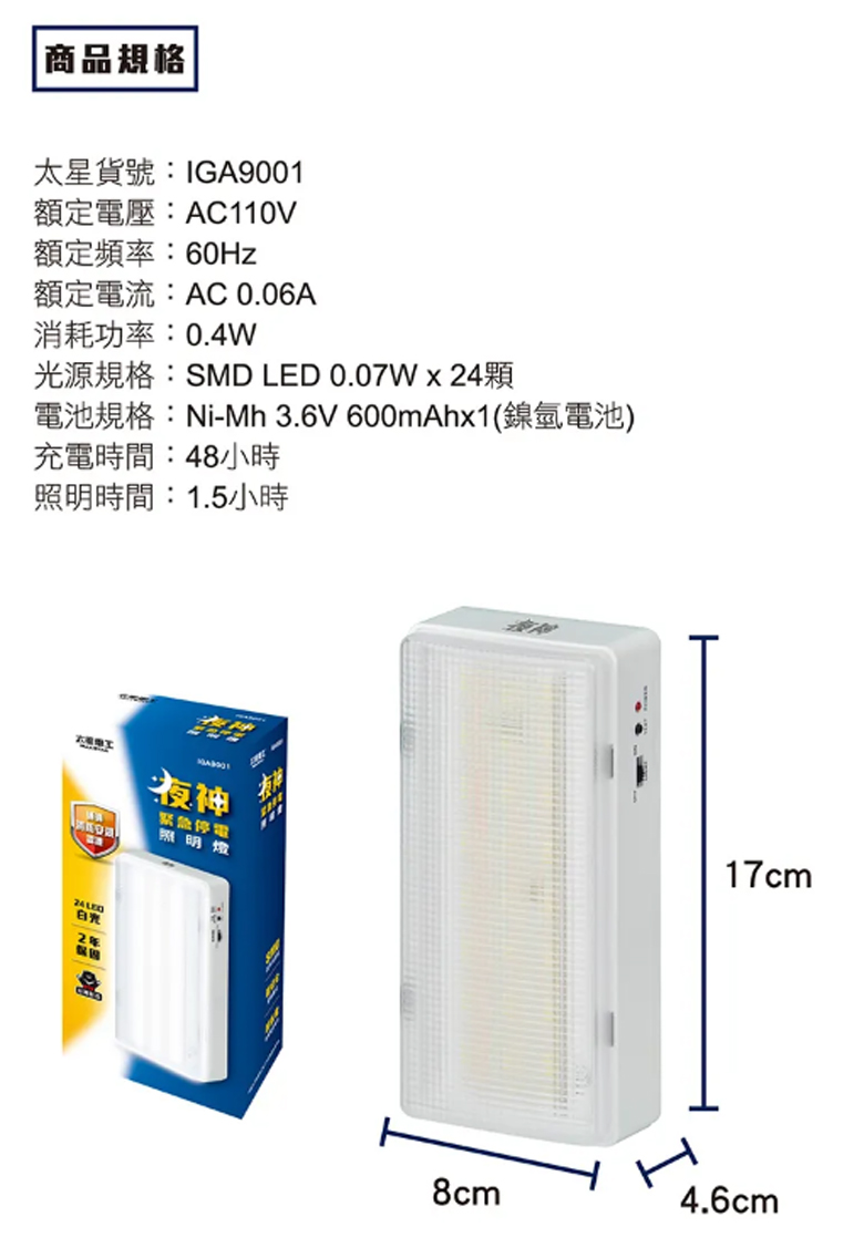 夜神LED緊急照明燈24LED (暖白光)