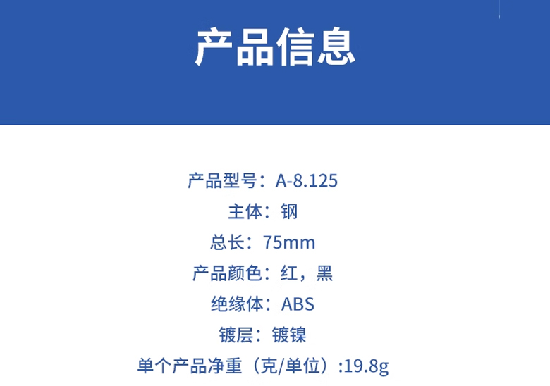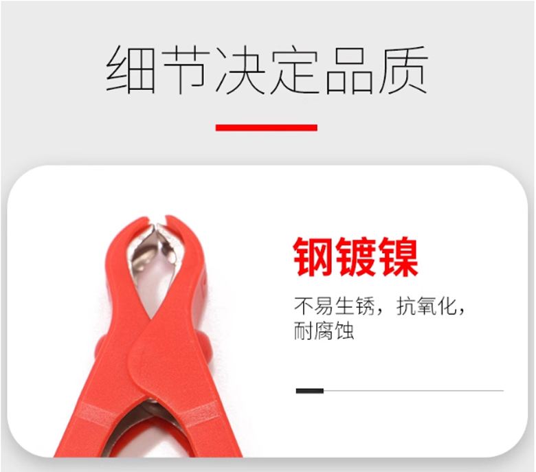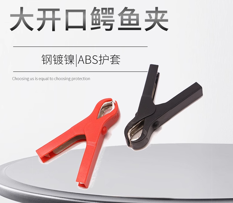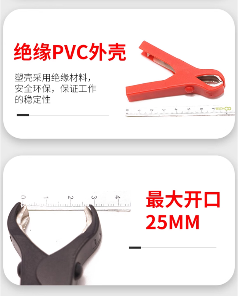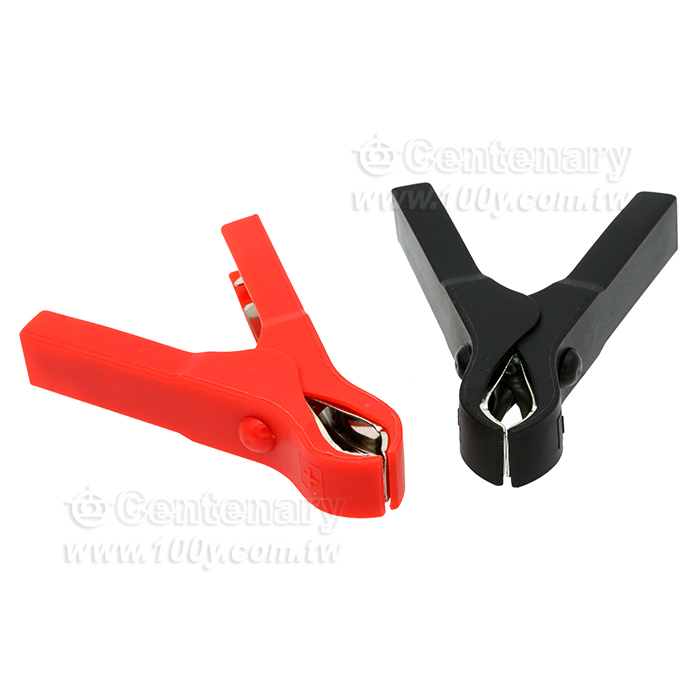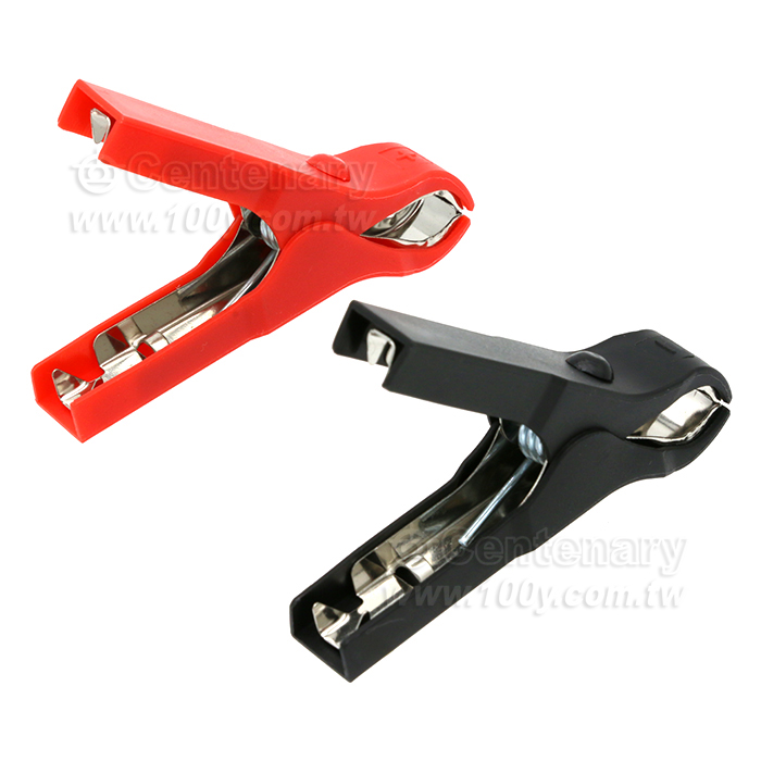 75mm大開口鱷魚夾鋼鍍鎳 ABS護套導電夾紅色