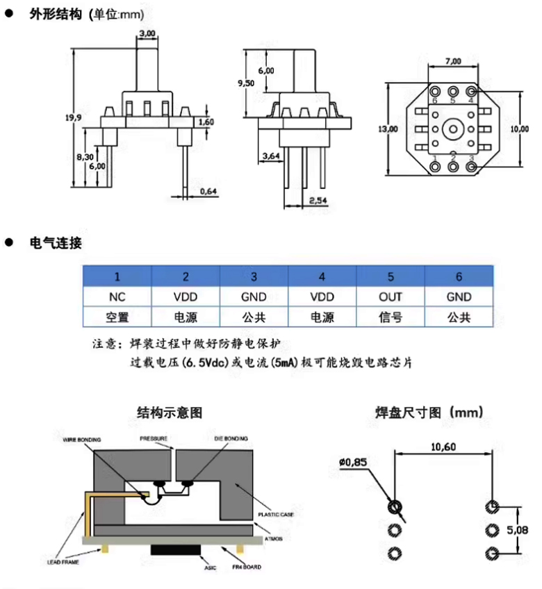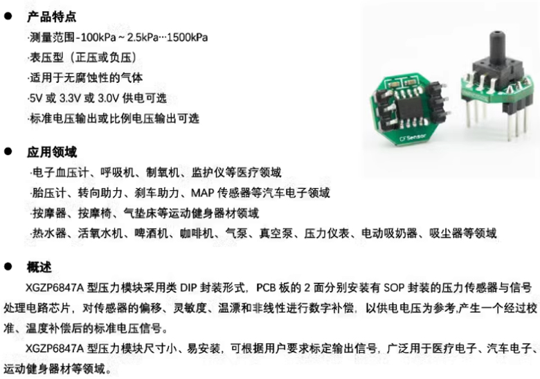 XGZP6847A氣體壓力電子血壓計感測器變送器模組5V