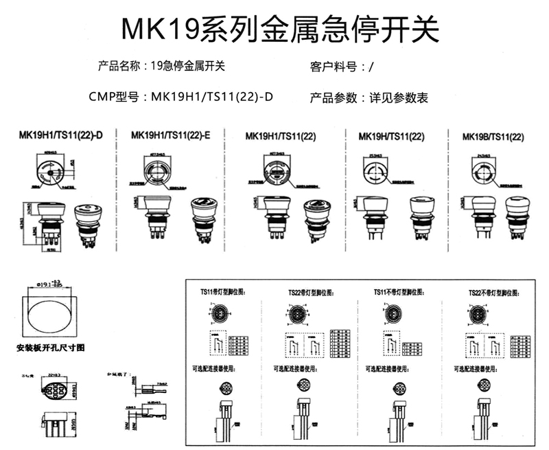 19mm急停2NO2NC不繡鋼-帶燈-E是環形燈