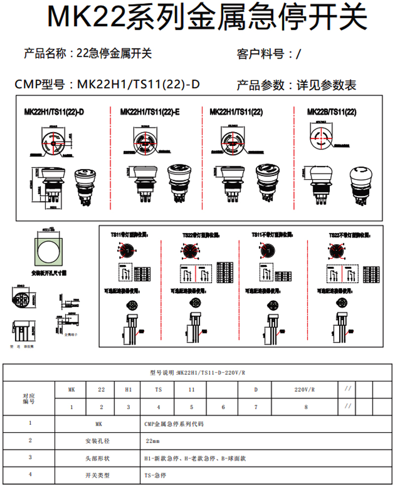 22mm急停2NO2NC不繡鋼-帶燈-E是環形燈
