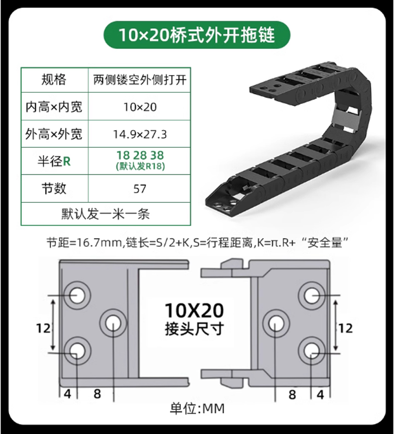 微型尼龍拖鏈-10*20-橋式外開-1M