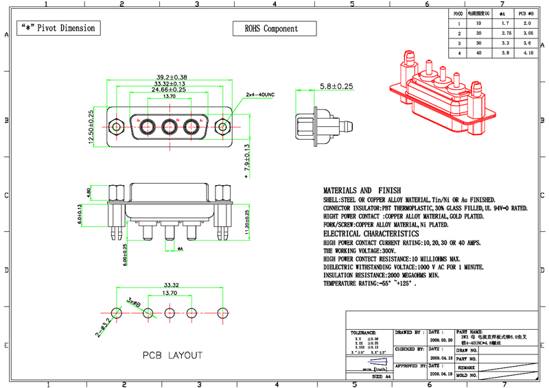 D-SUB連接器-3W3-母頭 DP型 焊板式 30A