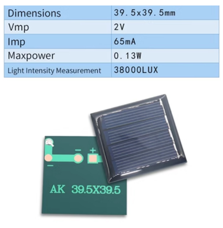2V 多晶太陽能板 65mA/0.13W 尺寸39.5*39.5mm
