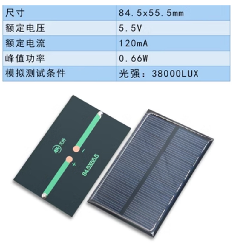 5.5V 多晶太陽能板 120mA/0.66W 尺寸84.5*55.5mm