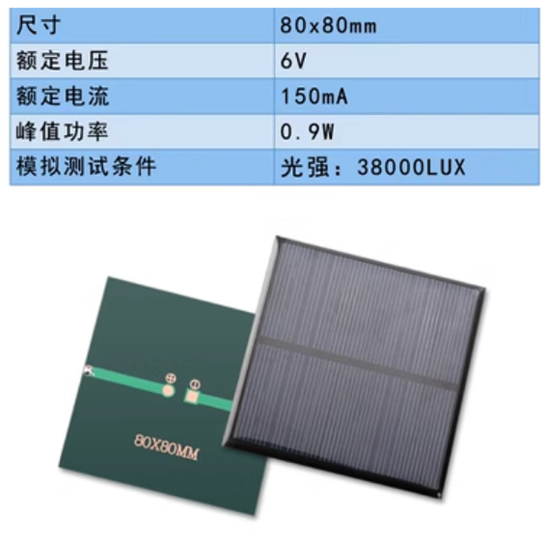 6V 多晶太陽能板 150mA/0.9W 尺寸80*80mm