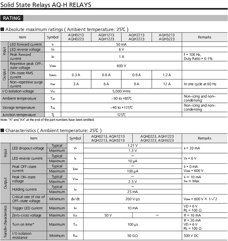 NAIS_AQH系列 固態繼電器