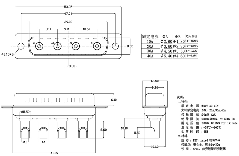 4W4公頭 DB型 4芯 焊線式