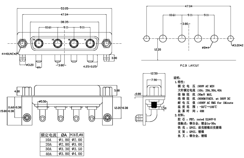 4W4母頭 DR型 4芯 彎插板