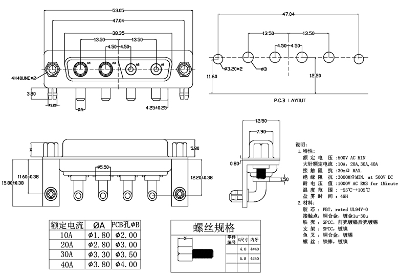 4V4母頭 DR型 4芯 彎插板