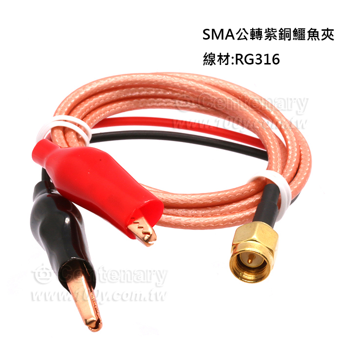 SMA-J+紫銅鱷魚夾35mm-RG316-0.3M