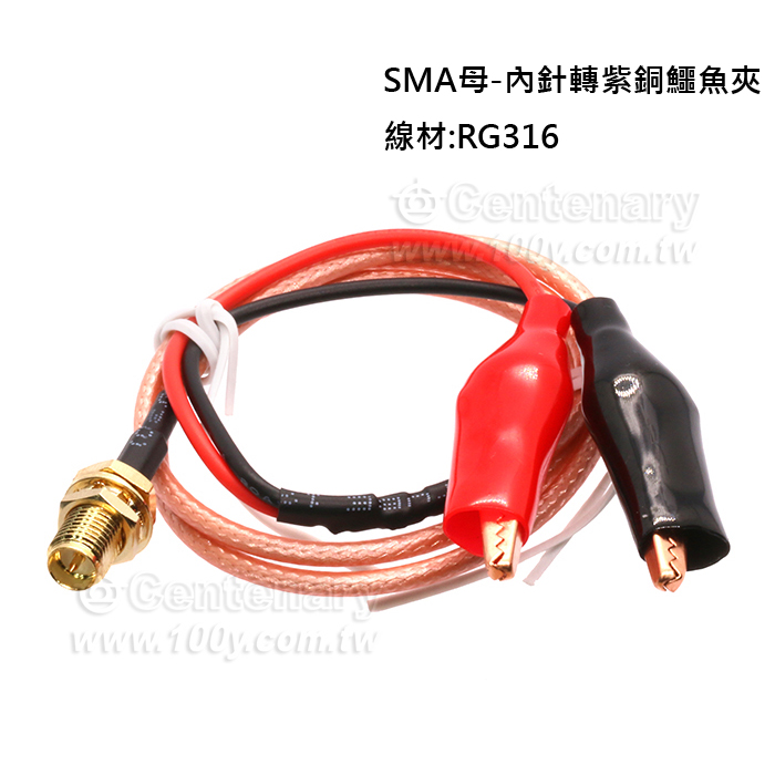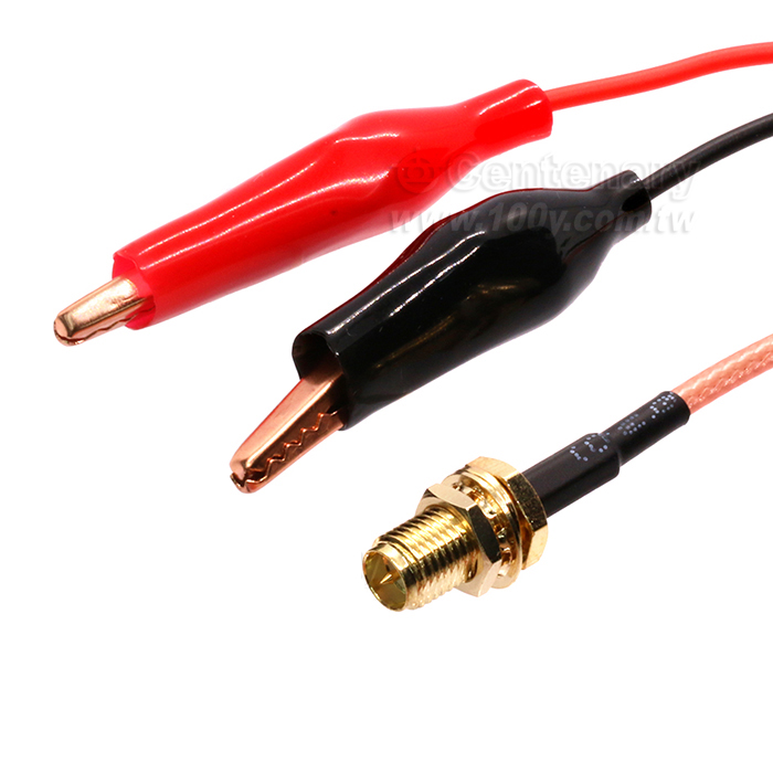SMA母-內針轉紫銅鱷魚夾35mm轉接線RG316線纜