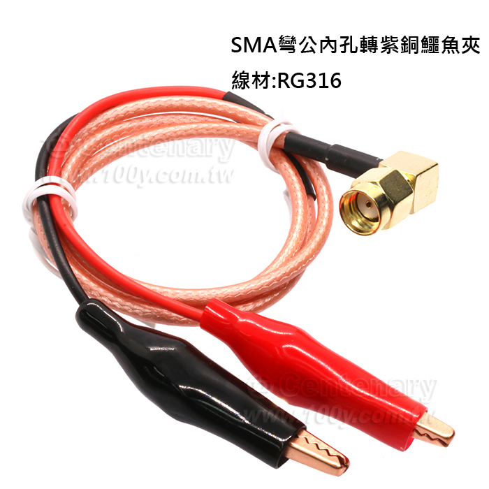 SMA彎公內孔轉紫銅鱷魚夾35mm轉接線RG316線纜