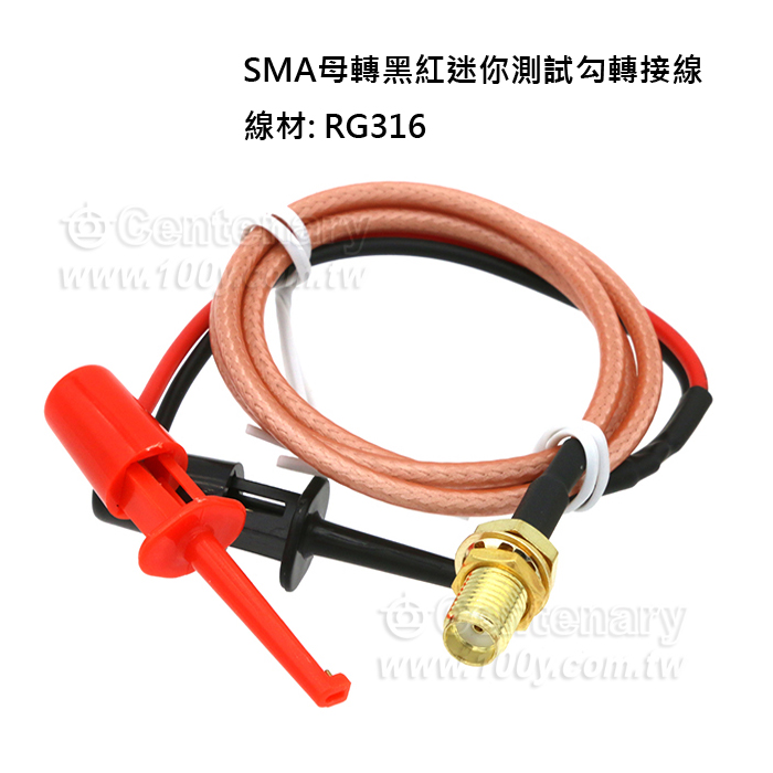 SMA母 轉 黑紅迷你測試勾41.5mm-轉接線-0.5M