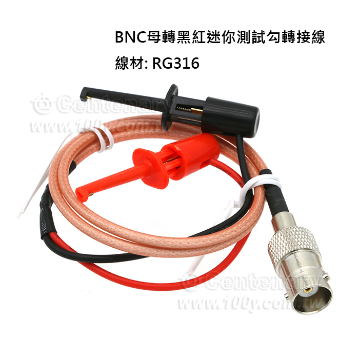 BNC母轉黑紅迷你測試勾41.5mm測試線-1M