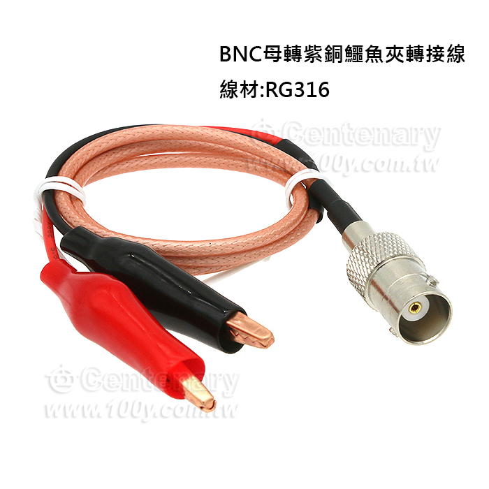 BNC-K+紫銅鱷魚夾35mm-RG316-1M