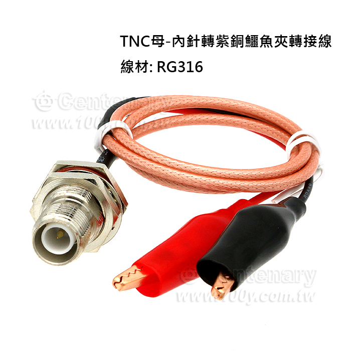 TNC母-內針轉紫銅鱷魚夾35mm轉接線RG316線