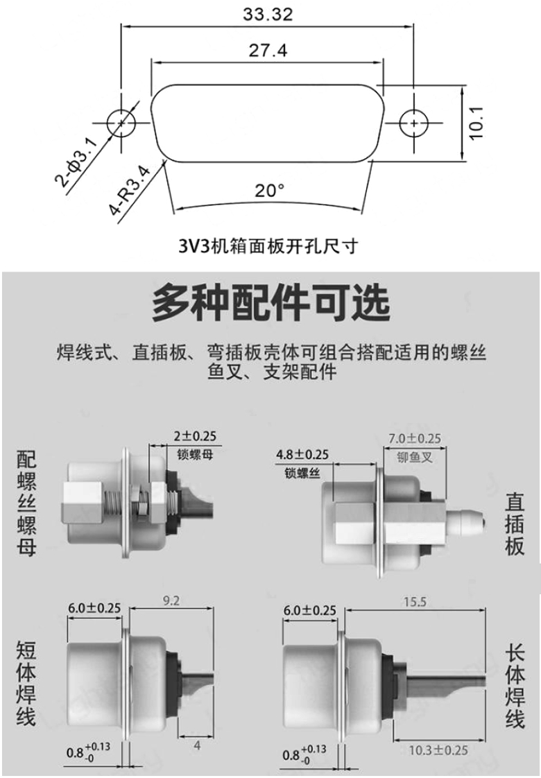 3V3 母座 DR型 3芯 彎插板