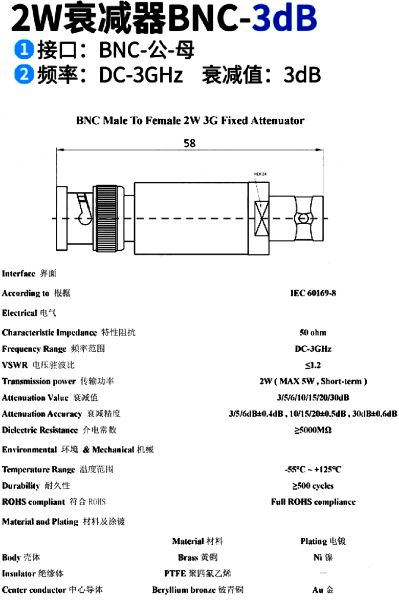 DC-3GHZ固定衰減器2W BNC公轉母3dB
