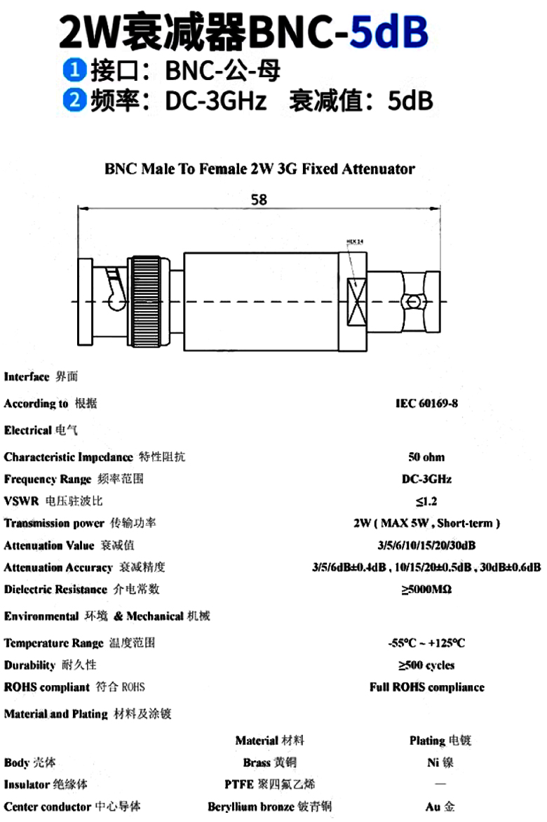 DC-3GHZ固定衰減器2W BNC公轉母5dB