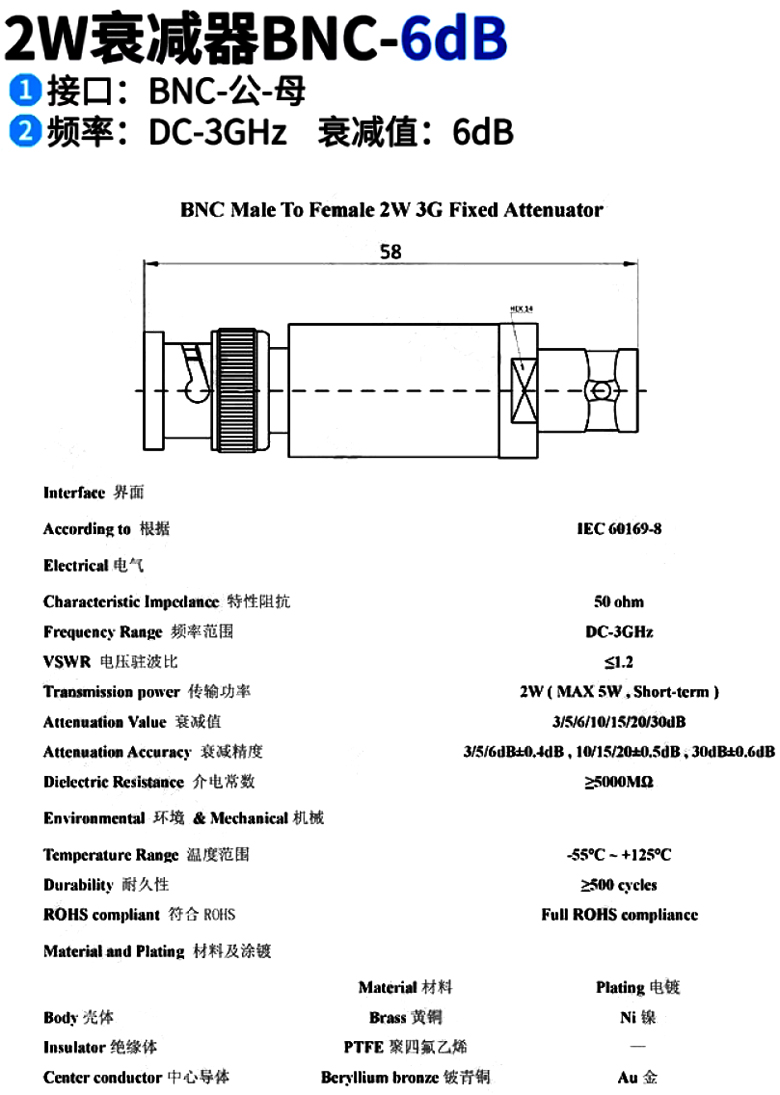 BNC-JK-3G-6dB-2W衰減器