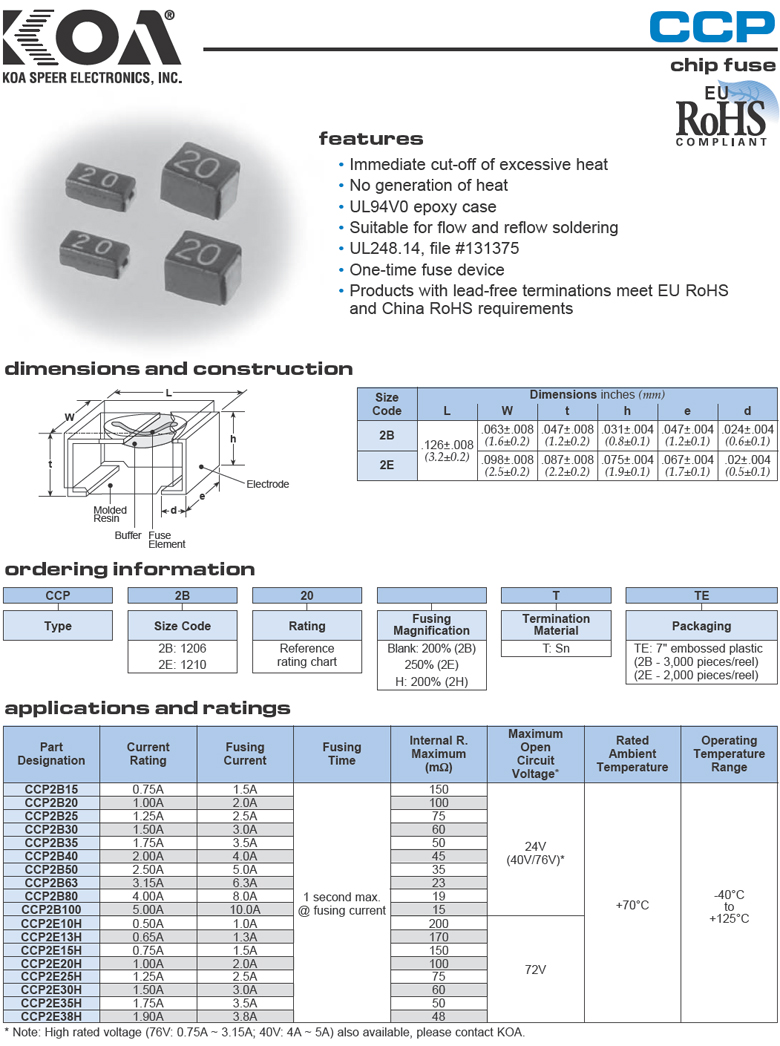 KOA_CCP系列 保險絲