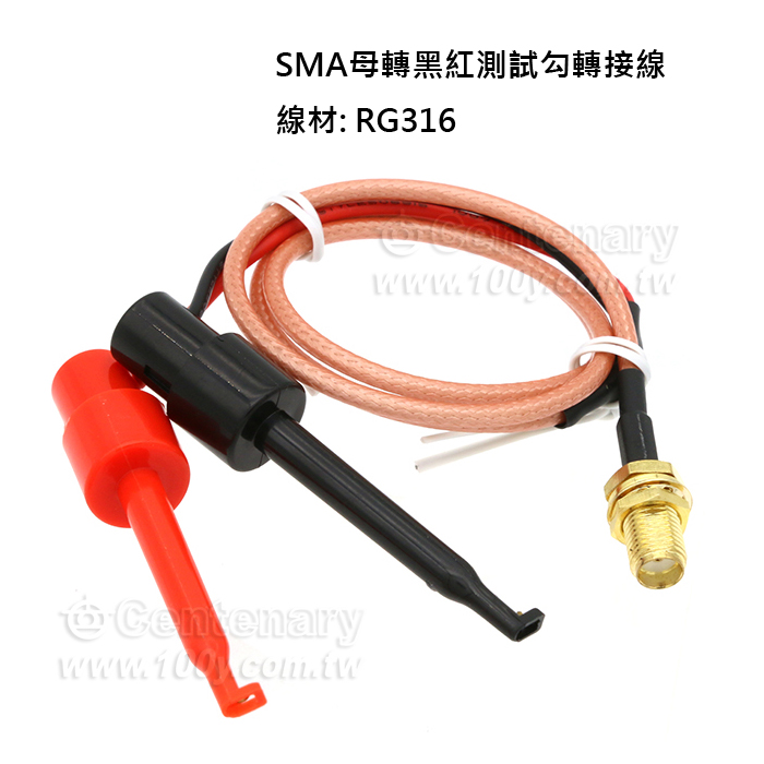 SMA母 轉 黑紅測試勾58mm-轉接線-0.3M