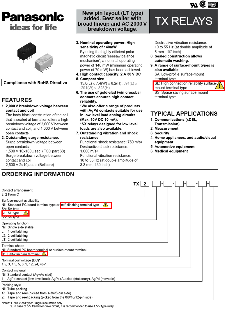 Panasonic_TX系列 繼電器