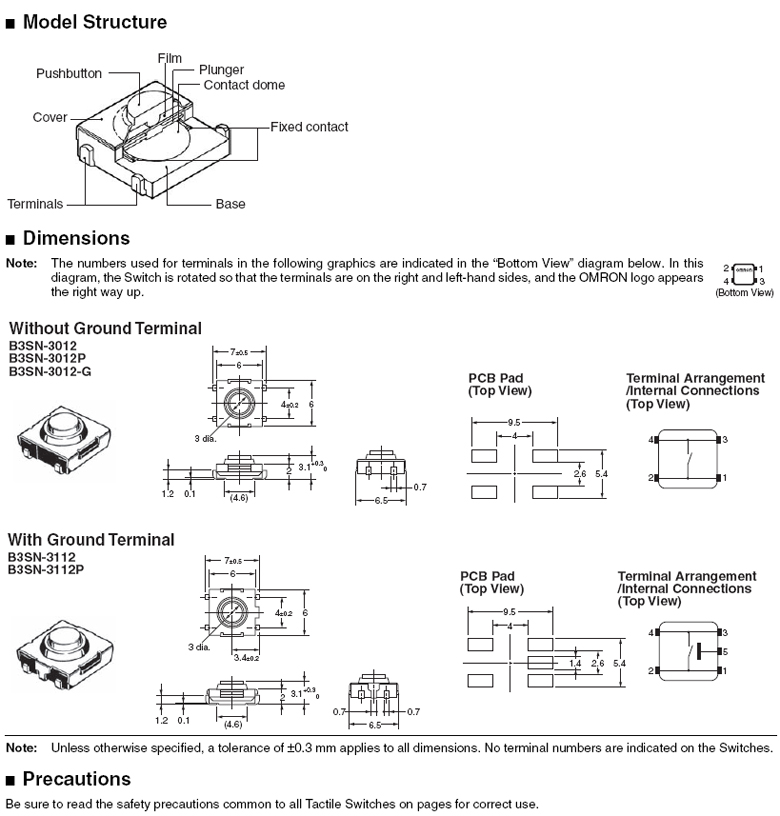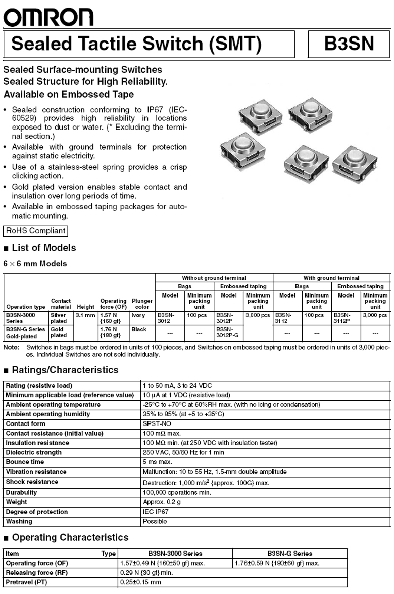 OMRON_B3SN系列 觸摸開關