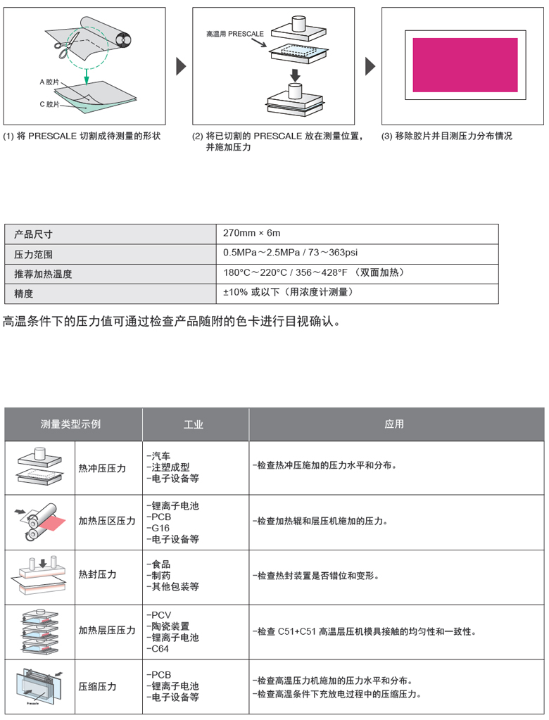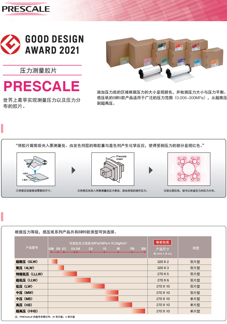 感壓紙可測壓力範圍10-50MPA 270mm*10m 雙片型