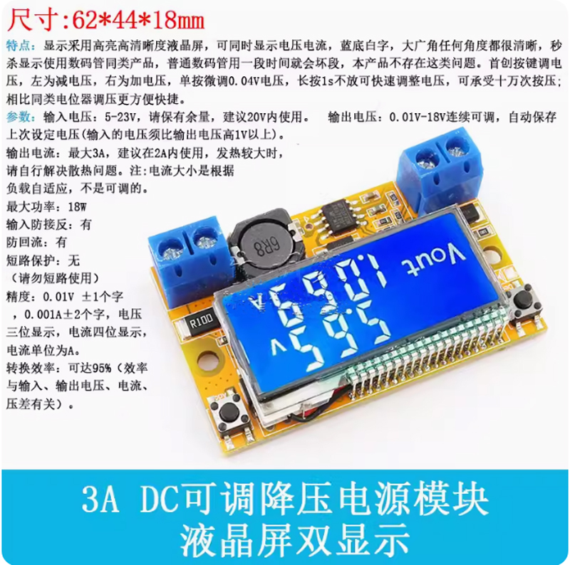 3A數控降壓電源模組-液晶屏顯示-帶殼
