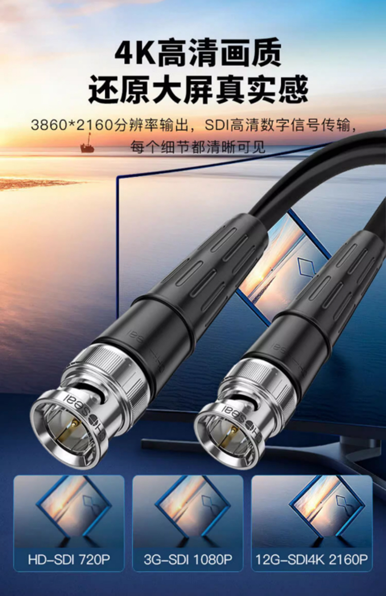 12G-SDI超低損耗同軸線- 4K 傳輸速率12GB/S 長20M