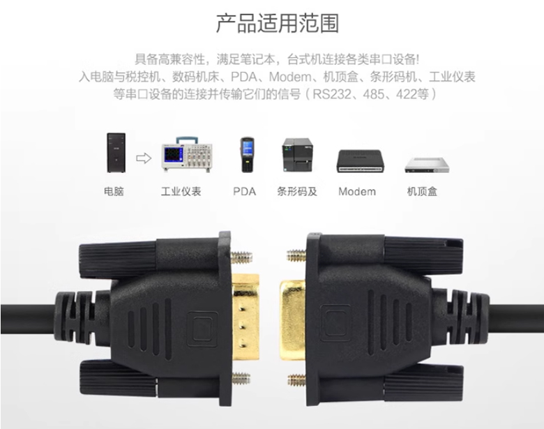 全铜双屏蔽 D-SUB 2排 9公/公 0.5M(直連線)