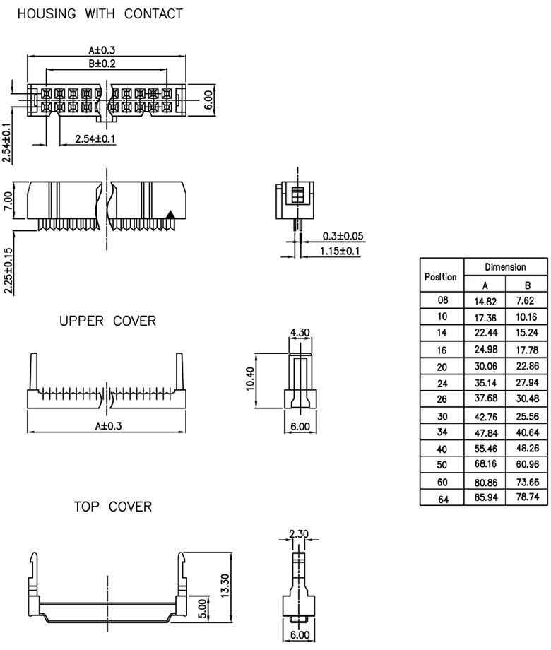 64P_IDC壓排母插頭 P:2.54mm【ROHS】灰白(三件式)