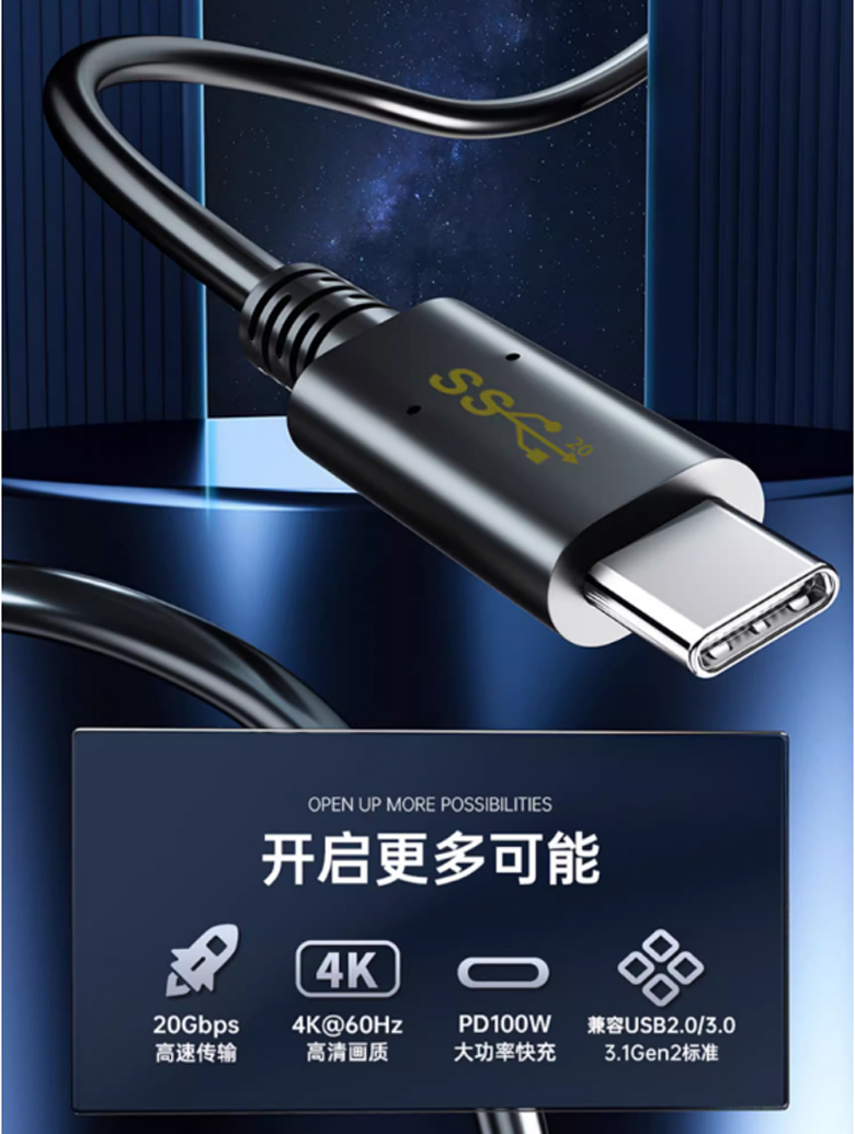 TYPE-C TO TYPE-C傳輸線 20GPBS 1.5M
