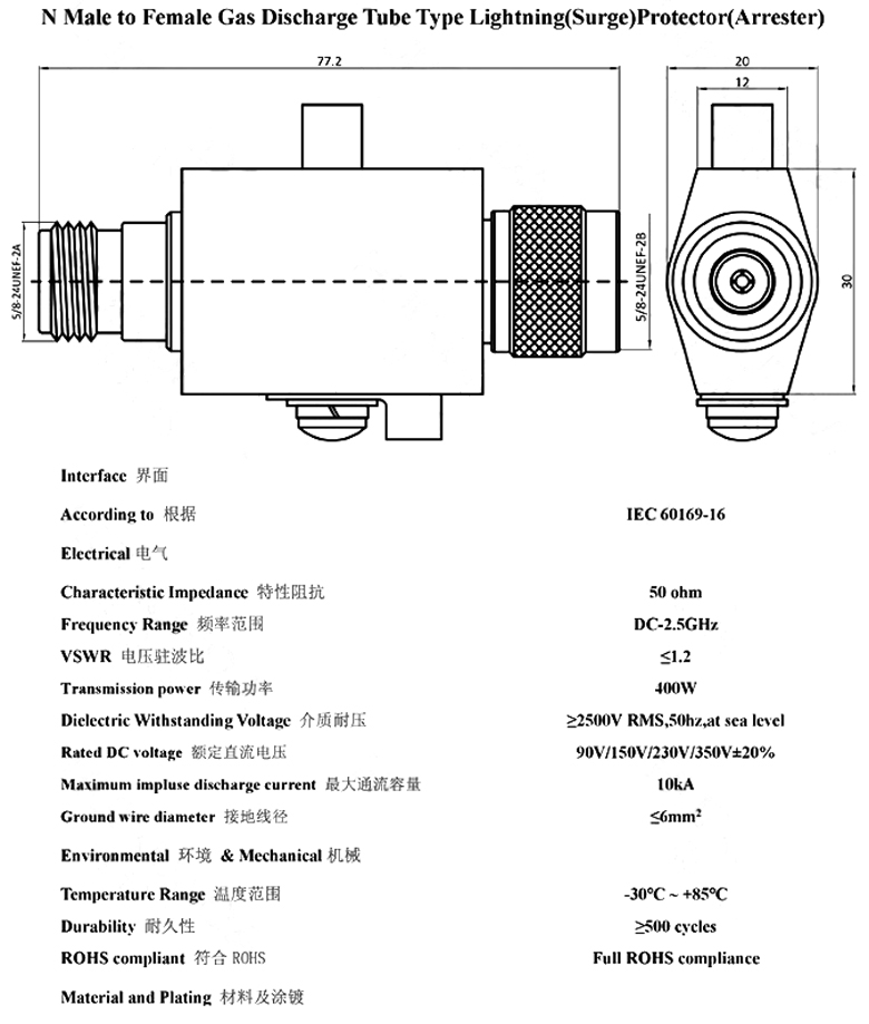 N型鑽石避雷器CA-23RP- N型避雷器 DC-2.5GHz