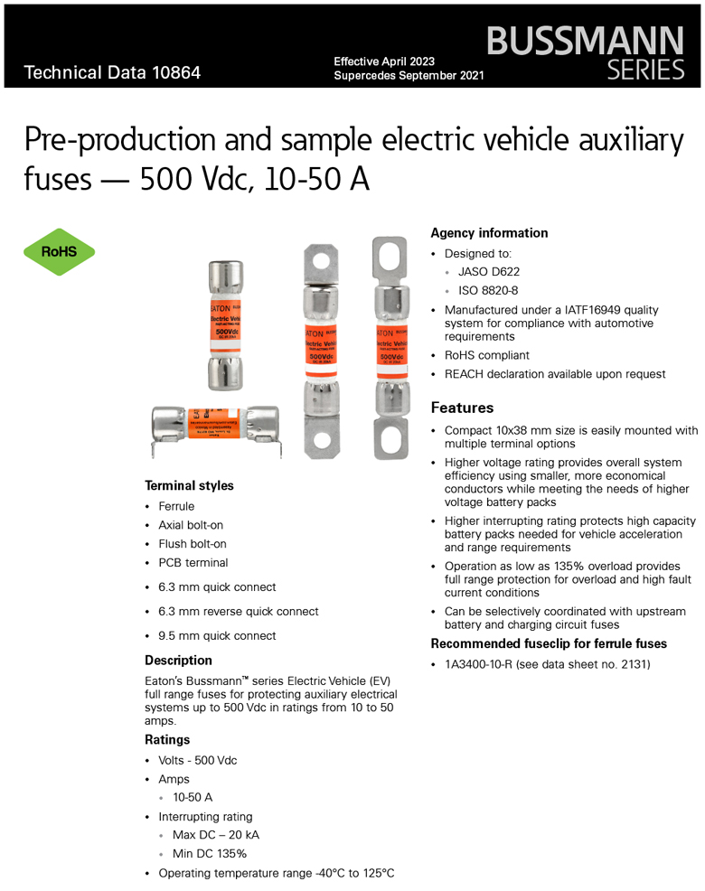 EV電動車新能源保險絲30A 500V