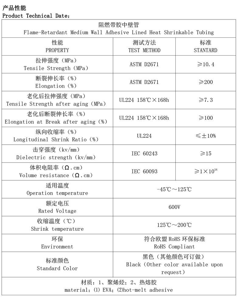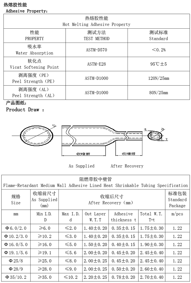 半硬中壁含膠熱收縮套管 38.1~12mm (1.22M/條)