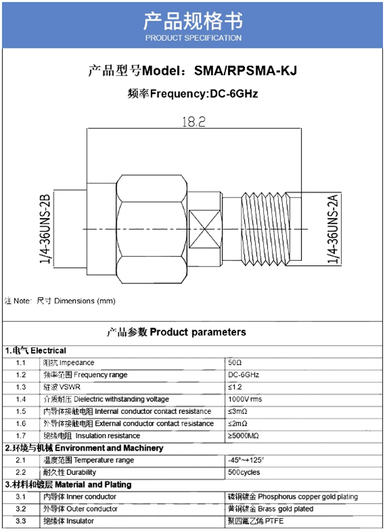 反極性轉接器SMA外螺紋內孔轉內螺內孔