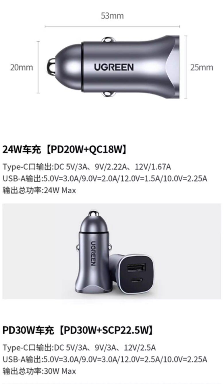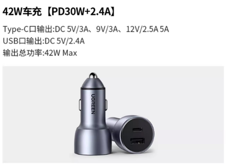 快充高品質車充 USB+ Type C