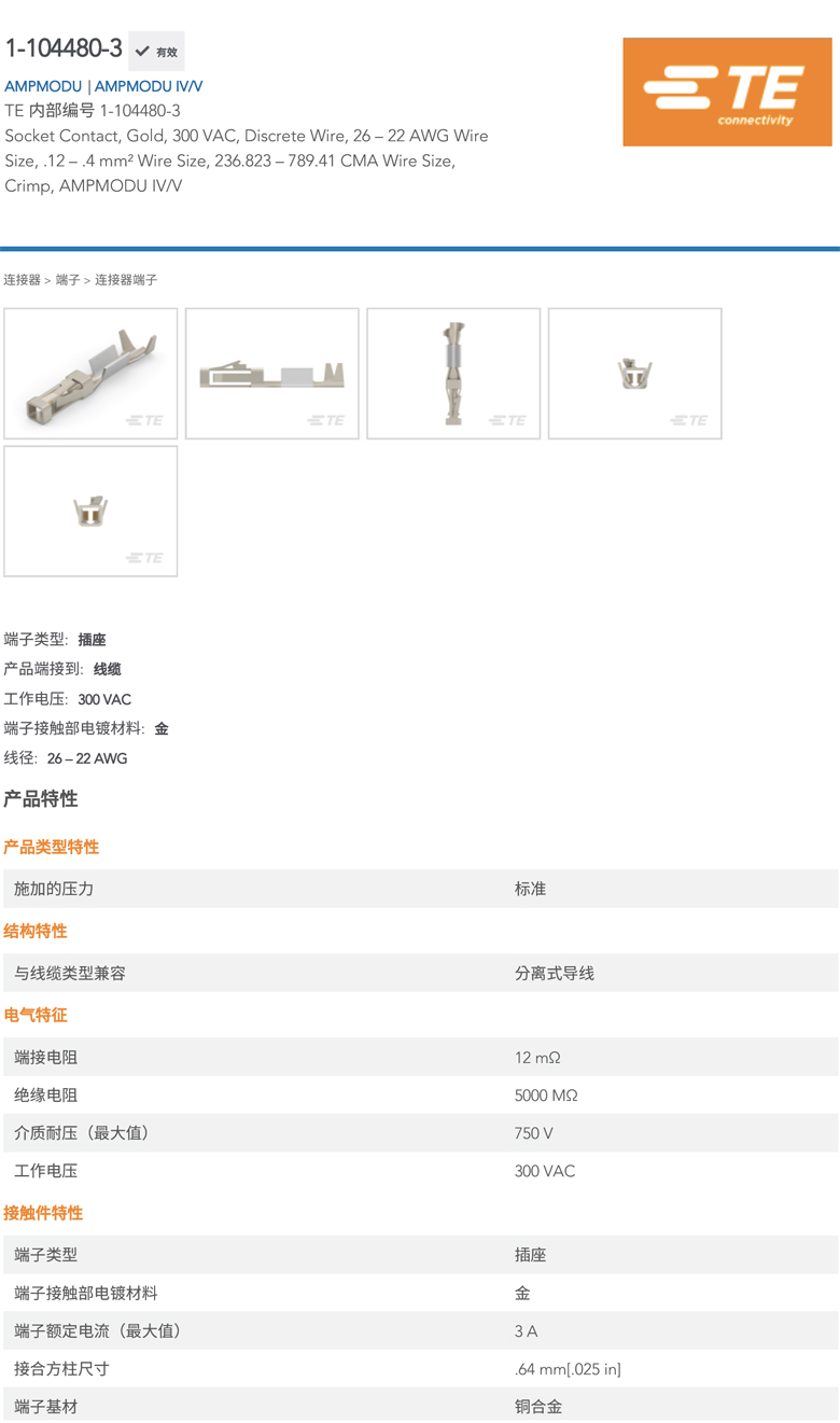 For AMPMODU MTE 2.54mm 母端子鍍金 26-22 AWG