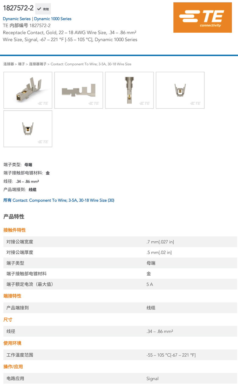 For Dynamic D-1100 2.0mm 母針 18-22 AWG 鍍金
