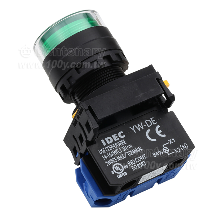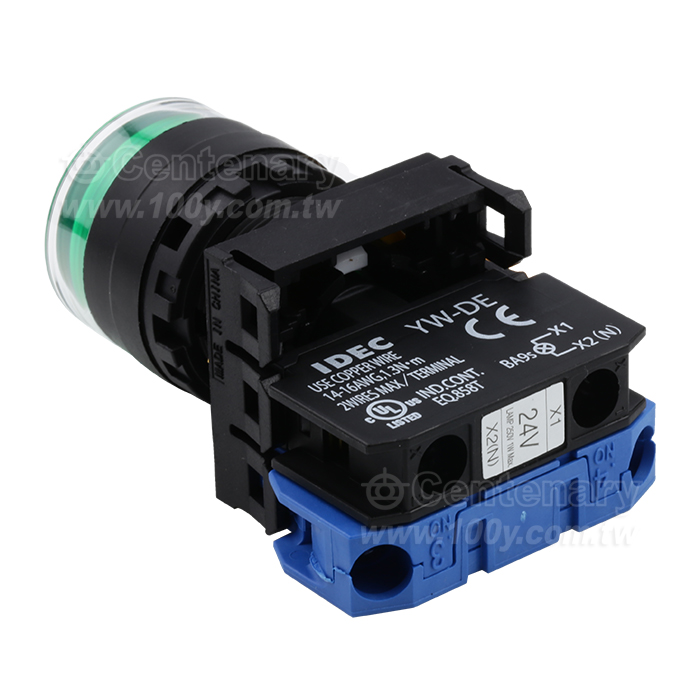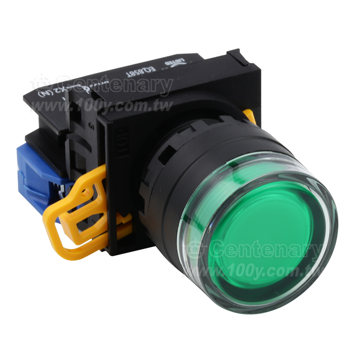 緊急停止按鈕開關22mm-全保護罩型凸頭形-LED瞬時型1NO 24VDC 綠色
