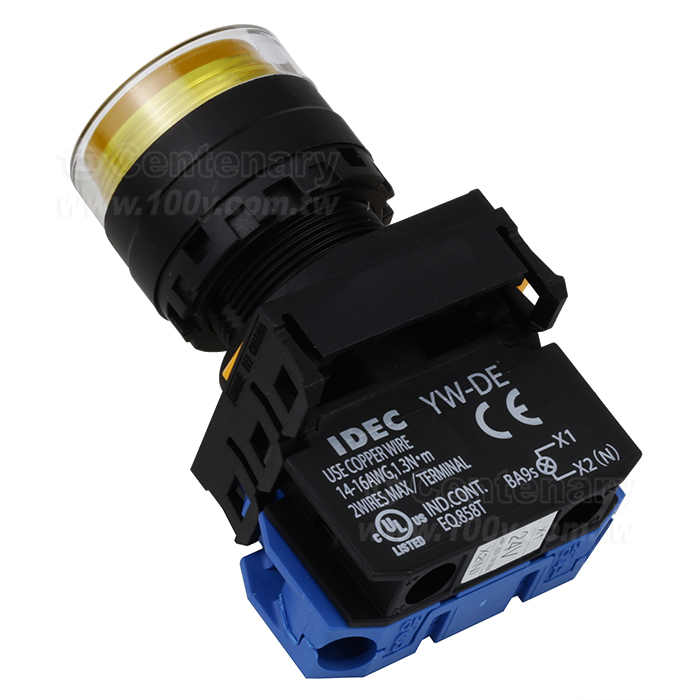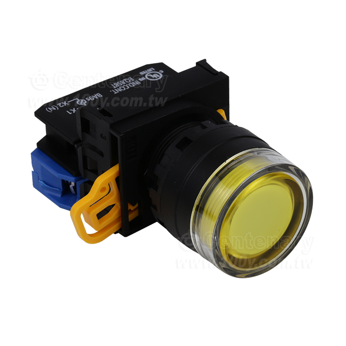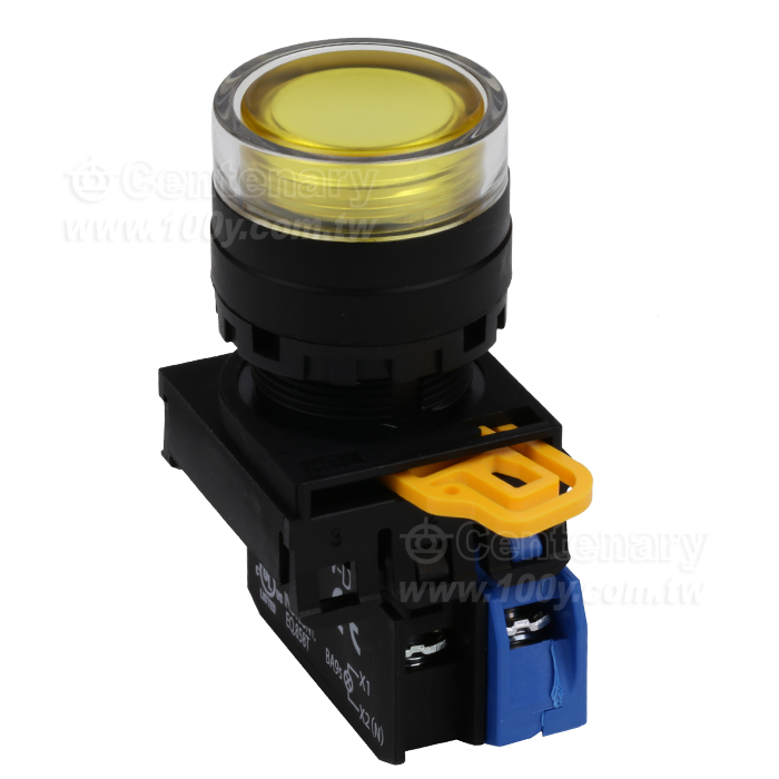 緊急停止按鈕開關22mm-全保護罩型凸頭形-LED瞬時型1NO 24VDC 黃色